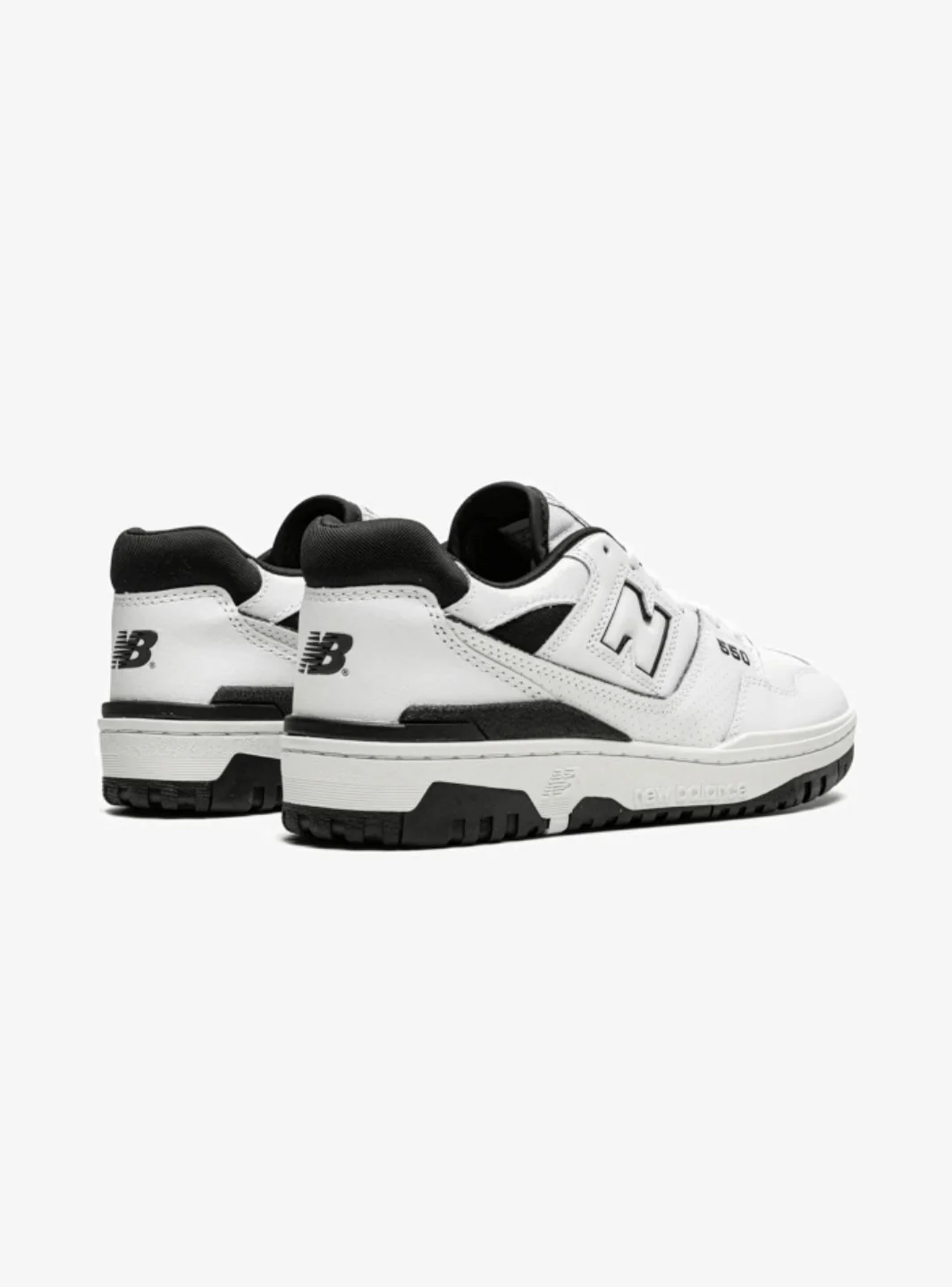 Le New Balance 550 White Black, ispirate alle iconiche New Balance P550, presentano una tomaia in pelle bianca liscia e perforata, che garantisce sia estetica che funzionalità. I pannelli neri aggiungono un tocco di eleganza e contrasto, valorizzando i dettagli sui marchi, sulla linguetta e sul rinforzo posteriore. La suola bicolore in toni bianchi e neri non solo offre un grip eccezionale, ma completa anche l'estetica del modello con un tocco di classe.