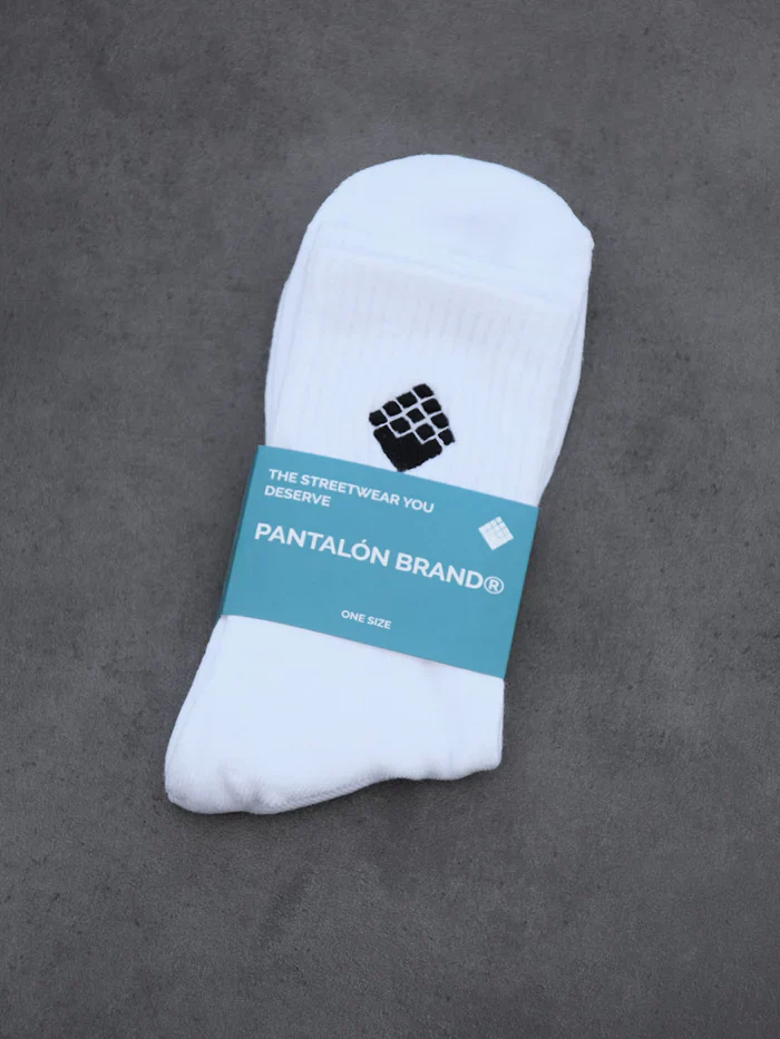 Esplora lo stile unico delle nostre calze a media altezza Pantalón Brand con logo ricamato. Queste calze sono un'aggiunta essenziale al tuo guardaroba streetwear. Con una taglia unica, si adattano perfettamente a ogni piede, offrendo comfort e vestibilità ottimali. Il logo ricamato aggiunge un tocco di personalità e stile distintivo. Disponibili nel classico colore White/Black, queste calze si abbinano facilmente a qualsiasi outfit.