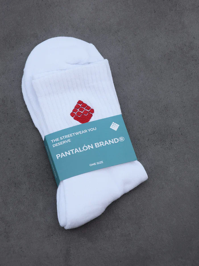 Esplora lo stile unico delle nostre calze a media altezza Pantalón Brand con logo ricamato. Queste calze sono un'aggiunta essenziale al tuo guardaroba streetwear. Con una taglia unica, si adattano perfettamente a ogni piede, offrendo comfort e vestibilità ottimali. Il logo ricamato aggiunge un tocco di personalità e stile distintivo. Disponibili nel classico colore White/Red, queste calze si abbinano facilmente a qualsiasi outfit.
